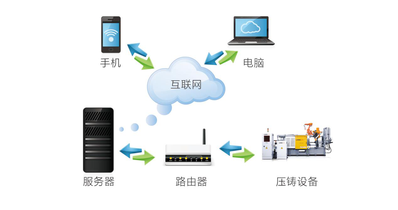 特別值得一提的是,聯(lián)升精密專為壓鑄機開發(fā)的網(wǎng)絡控制與傳輸功能,能夠?qū)崿F(xiàn)對整個壓鑄車間設備和生產(chǎn)過程的信息化管理。聯(lián)網(wǎng)后可隨時隨地通過智能手機或電腦掌控壓鑄機及壓鑄生產(chǎn)過程,從而提升壓鑄生產(chǎn)管理水平,提高生產(chǎn)效率,真正為企業(yè)實現(xiàn)降本增效。