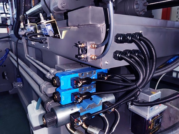 優(yōu)化傳統(tǒng)雙缸射臺(tái)設(shè)計(jì),采用拱形一體式射臺(tái)座,取消傳統(tǒng)兩點(diǎn)支撐,提升射臺(tái)整體剛性,射臺(tái)動(dòng)作更加平穩(wěn)。射臺(tái)油制控制部分直接連接射膠油缸,提高動(dòng)作響應(yīng)。(320噸以上機(jī)器配置雙射移裝置)